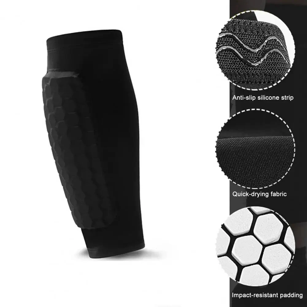 Black Honeycomb Soccer Shin Guards | Breathable Shockproof Leg Sleeves Socks for Football Practice
